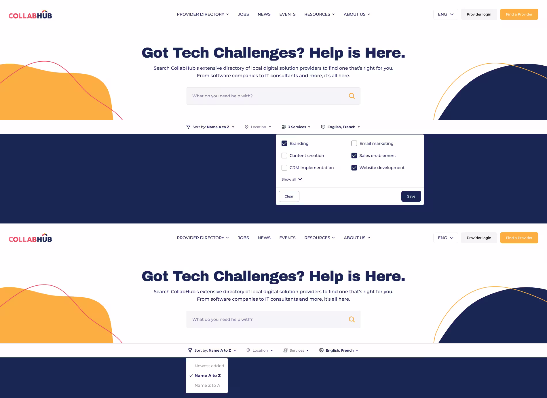 Design and develop a flexible directory system where users could easily discover people, services, and organizations through clear navigation and smart filtering, fostering meaningful professional connections. - Process: