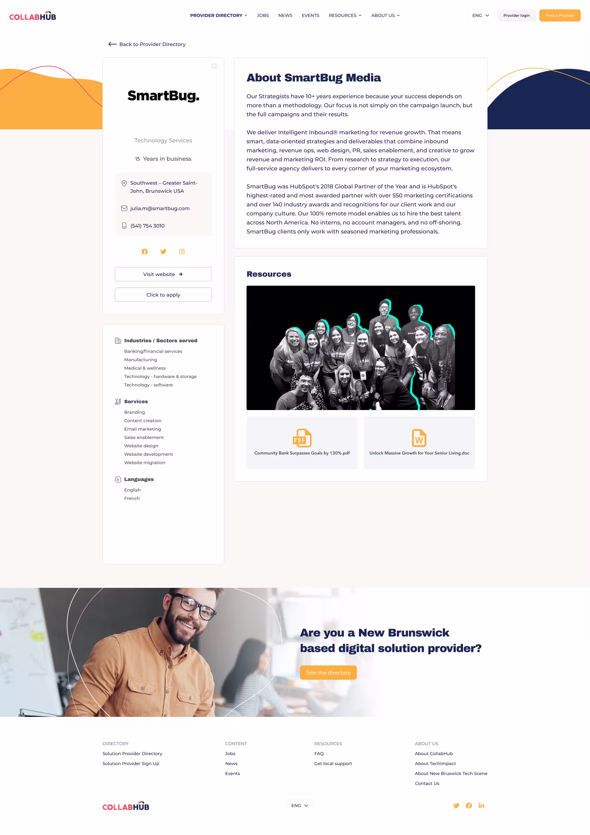 Built on HubSpot CMS, I designed a modular structure that allowed the client to expand and maintain the platform efficiently. Each component was crafted for flexibility, enabling smooth addition of new categories, filters, and profiles as the ecosystem evolved. The UX emphasized intuitive discovery through sector, skills, and collaboration type filters, while the interface remained clean and cohesive to ensure scalability and trust. - Outcome: